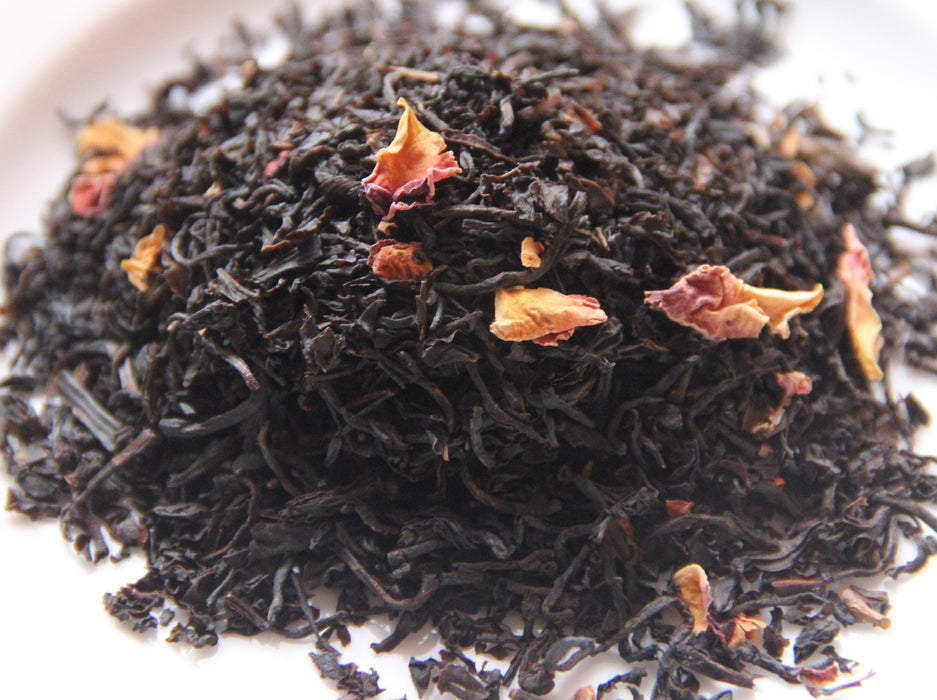 A luscious and aromatic peach-flavored black tea with peach bits and rose petals. Enjoy plain or slightly sweetened.